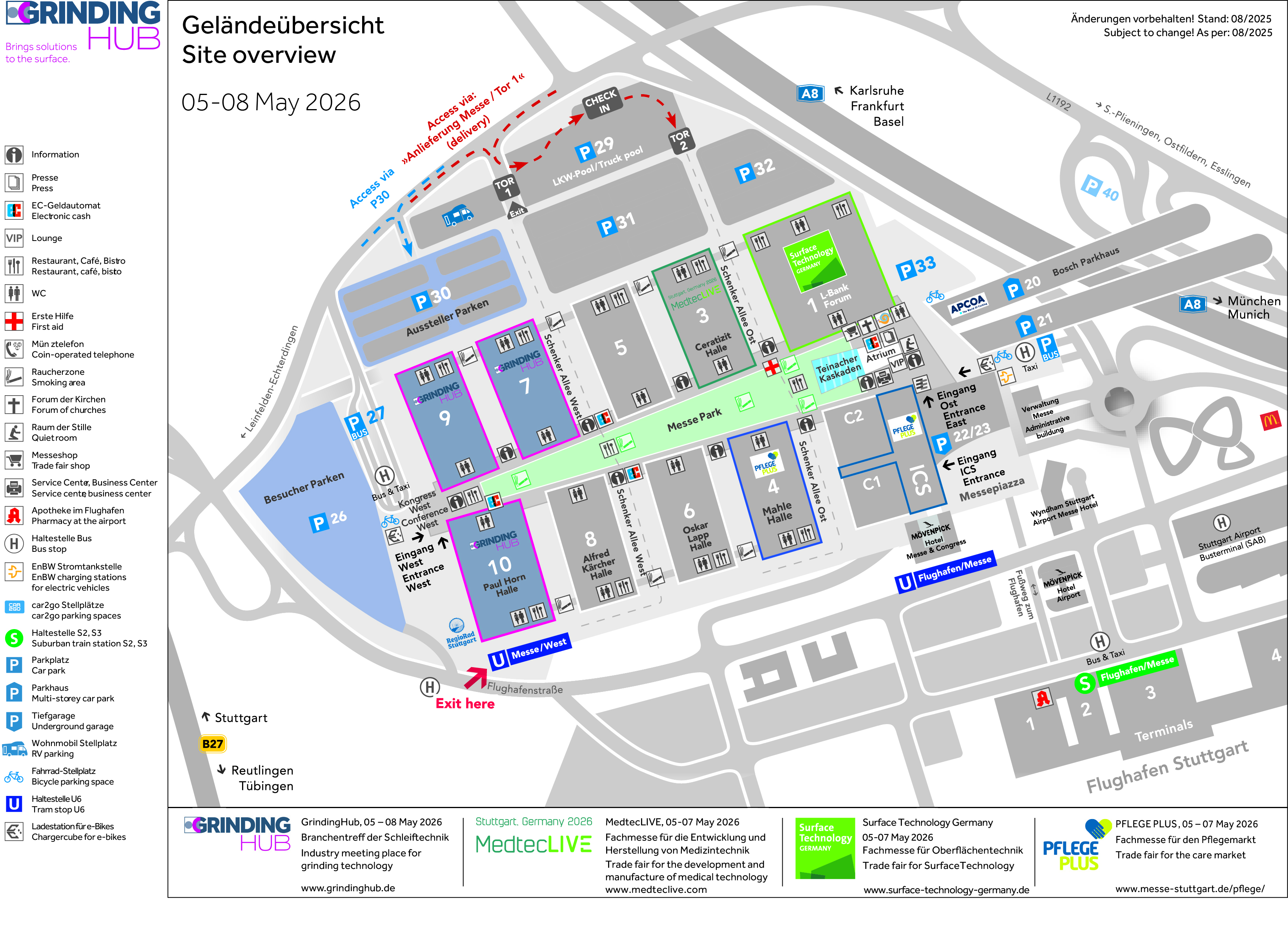 Other trade fairs are being held at the same time as GrindingHub. For visitors, this means that they can discover a wide range of topics at the same time and in a focused manner at one exhibition center. By the way: Admission tickets are valid for access to all trade fairs. Exhibitors benefit from a significantly greater reach to trade visitors from the most important target industries.