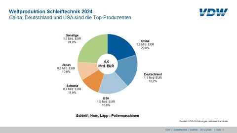 Im ersten Halbjahr 2025 sank die Produktion von Schleiftechnik um 15 Prozent gegenüber dem Vorjahr – von 501 auf 425 Mio. Euro. Besonders gravierend: Der Export brach um fast ein Viertel ein, von 398 auf 306 Mio. Euro. Während der Export schwächelt, stützen Technologieprojekte den Absatz im Inland. Die heimische Nachfrage wird vermehrt durch inländische Anbieter gedeckt. Der Inlandsverbrauch stagnierte bei 247 Mio. Euro und legte nur um 1 Prozent zu. Insgesamt sinkt die Handelsintensität: Weniger Export, weniger Import.
