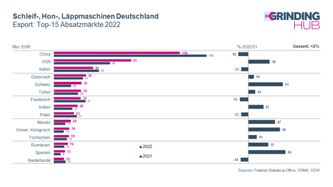 Schäfer fasst die Entwicklungen wie folgt zusammen: „Die für 2022 vorliegenden Daten können positiv stimmen, denn wir verzeichnen in der Schleiftechnikbranche ansehnliche Wachstumsraten. Das ist umso wichtiger angesichts der großen Herausforderungen wie Energiewende oder Fachkräftemangel, an deren Anfang die Wirtschaft gerade erst steht. Anhand der globalen Handelsbeziehungen zeigt sich aber auch die nach wie vor volatile Lage des Weltmarkts. Noch liegen nicht für alle Länder aus dem vergangenen Jahr zahlen vor. Somit bleibt abzuwarten, wer zu den Gewinnern und wer zu den Verlierern zählt.“